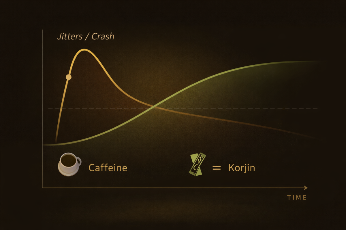 Many people start Korjin while still drinking coffee and find they naturally reduce their intake over time — not because they're trying to, but because they no longer need it as much.