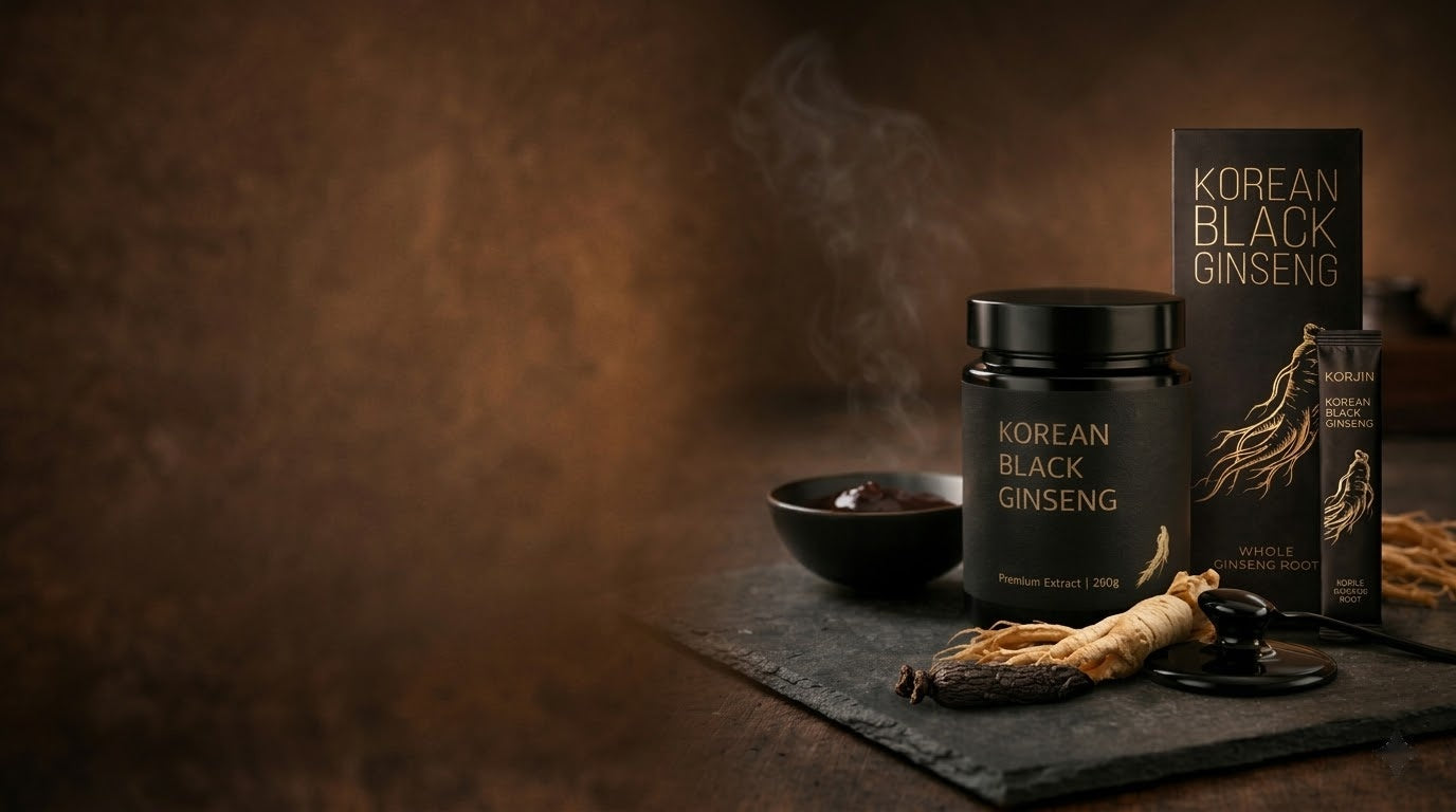 Korjin uses Korean black ginseng, made by repeatedly steaming and drying the root up to nine cycles. This traditional process transforms the ginseng and enhances absorption while unlocking rare ginsenosides not found in standard ginseng.