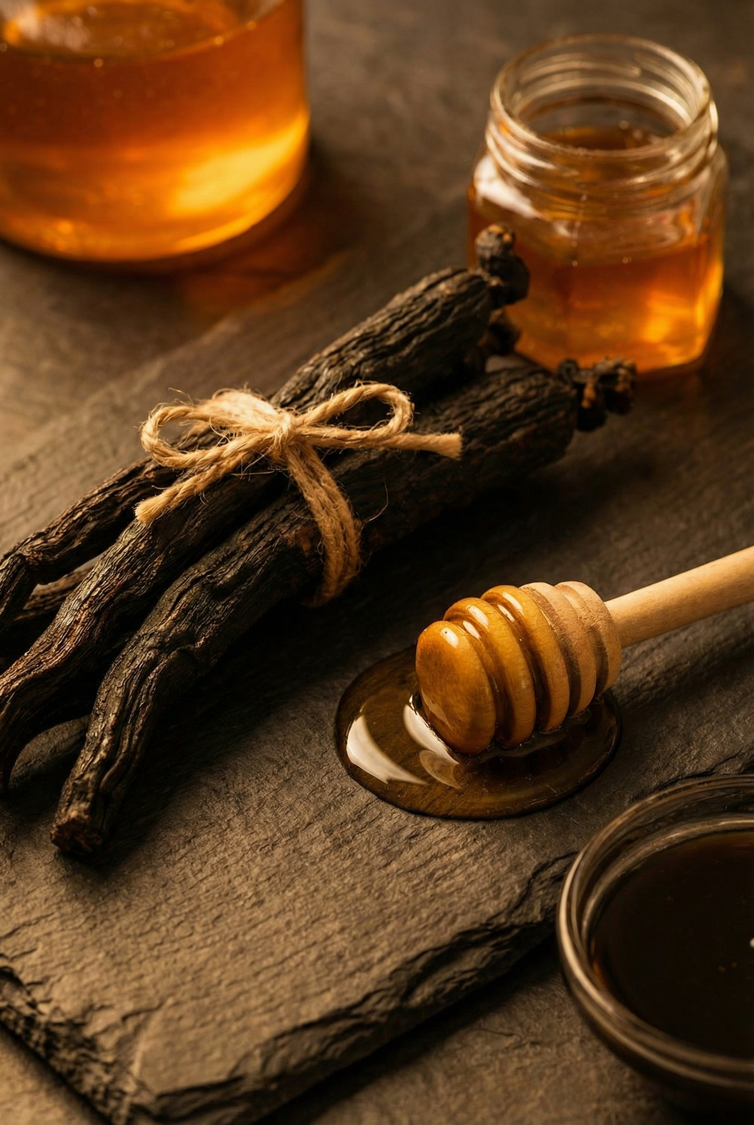 Korean black ginseng — the rarest, most potent form of the root, 6 years grown and nine-times transformed. And natural honey from Jeju Island — high-quality, nothing artificial. No Artficial Sweeteners. No fillers. No B.S.