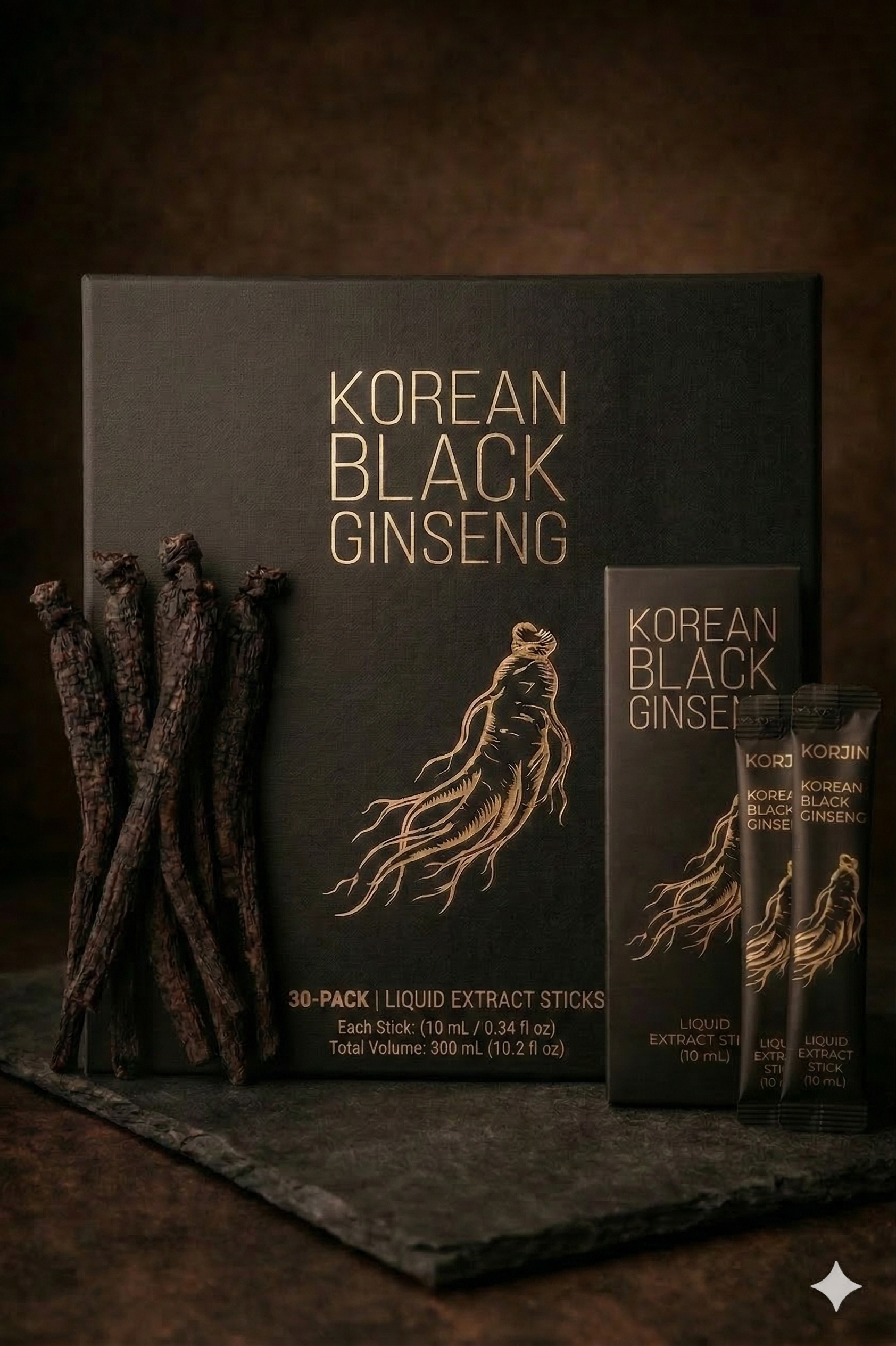 Korjin uses Korean black ginseng, made by repeatedly steaming and drying the root up to nine cycles. This traditional process transforms the ginseng and enhances absorption while unlocking rare ginsenosides not found in standard ginseng.